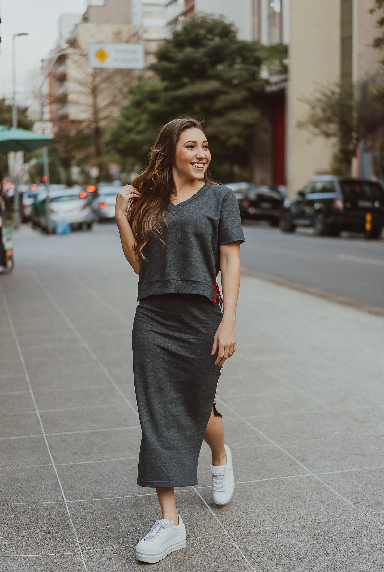 Sugestões de combinações: Para um look casual, aposte em tênis plataforma, All Star, sapatilhas ou Anabela. Se a proposta é algo mais casual chic, escolha sandálias de tiras ou sapatos de salto médio para elevar o visual. Graças à versatilidade do jeans, qualquer cor de calçado complementará o vestido, criando um look incrível.