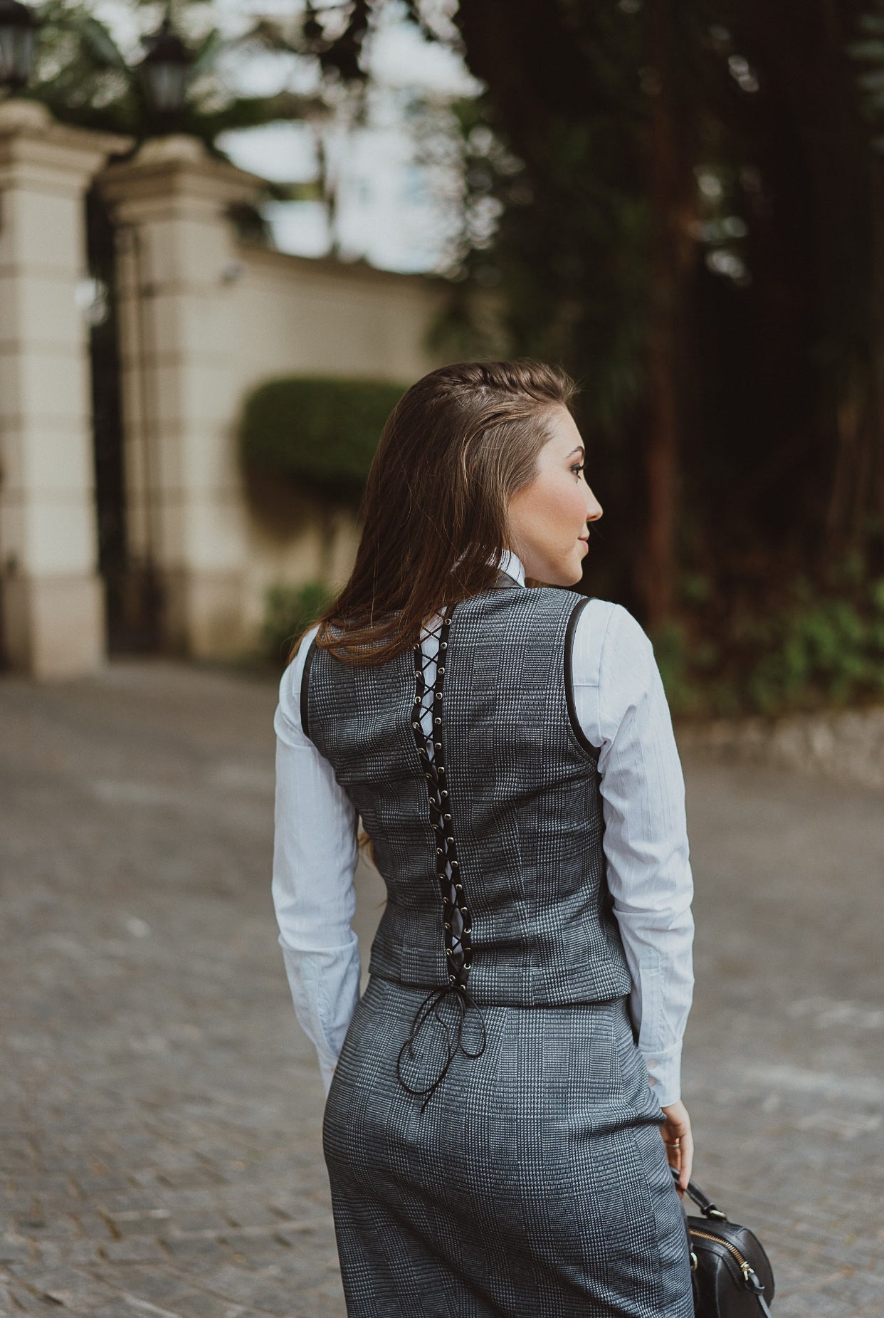 Para complementar este look elegante, sugerimos o uso de scarpins pretos ou sandálias de salto alto em tom nude, ou bota. Esses calçados não apenas alongam a silhueta, mas também adicionam um toque de sofisticação, tornando a combinação perfeita para eventos sociais, jantares ou festas.